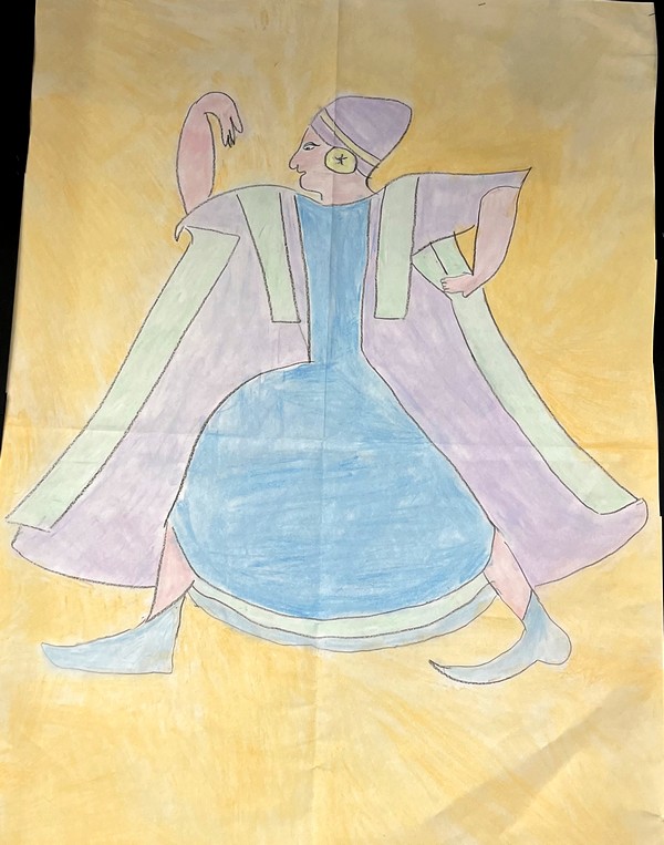 2) poi, con Fajar, Martino, Filippo e Francesco Maria abbiamo preso i gessetti colorati e abbiamo colorato l’immagine e lo sfondo;