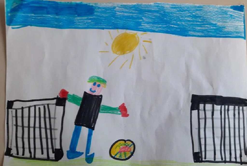 La palla si colpisce con i piedi, anche se le rimesse da fuori campo si battono con le mani; c’è un’area vicina alla porta che si chiama “area di rigore” dove solo il portiere può prendere la palla con le mani.