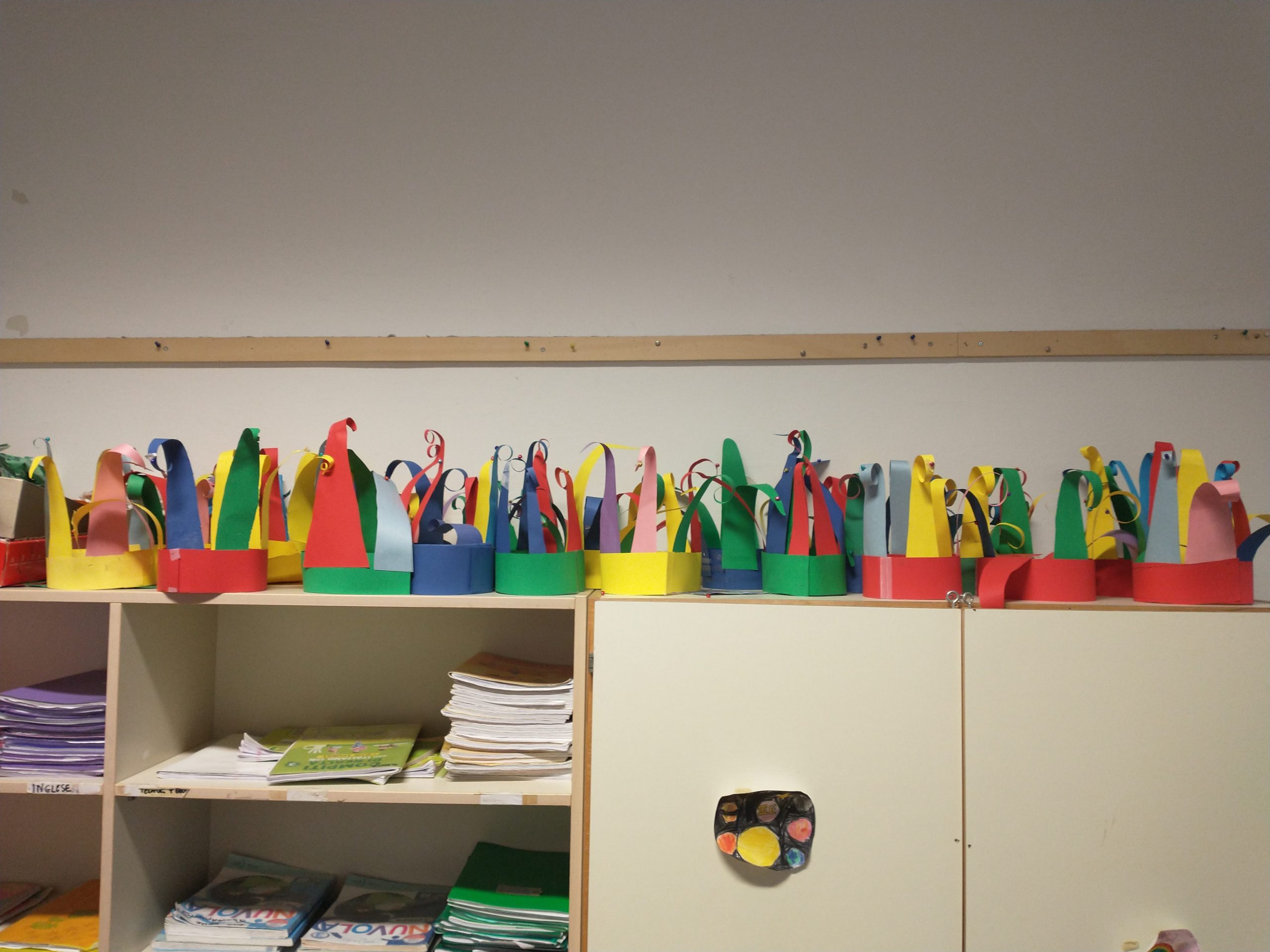 Alla nostra classe piace molto arte e immagine. Quando è arrivato il Carnevale abbiamo fatto un cappello da giullare; abbiamo creato una striscia di cartoncino su cui abbiamo attaccato dei triangoli di cartoncini di vari colori. Abbiamo arricciolato le punte e con lo scotch biadesivo abbiamo attaccato i campanellini. Il risultato è stato proprio un bel travestimento!