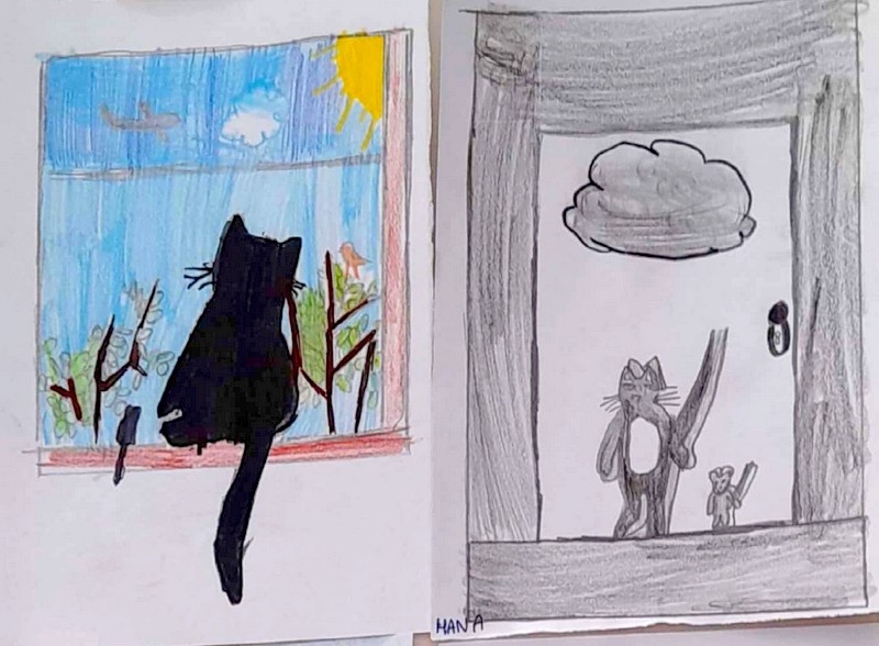 Mix e Mex diventarono amici. Mex descriveva a Mix quello che vedeva fuori dalla finestra.