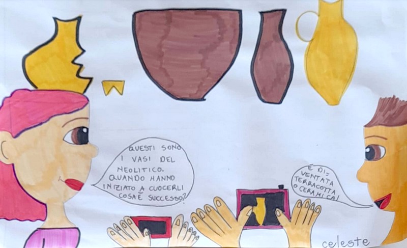 Abbiamo osservato i vasi in terracotta di forme diverse e ognuno con una sua funzione; c’erano anche un mestolo e un colino.