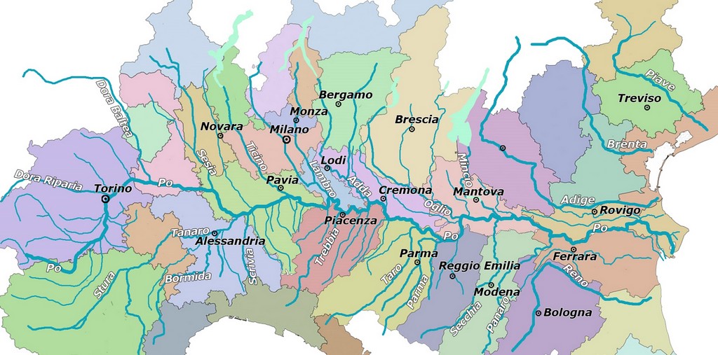 Il Po, con i suoi numerosi affluenti, ha trasportato pietre e terra dalle montagne, riempiendo così con tali detriti un antico golfo marino e formando infine una pianura: la Pianura Padana, che è quindi una pianura di origine alluvionale, antica circa 600.000 anni.