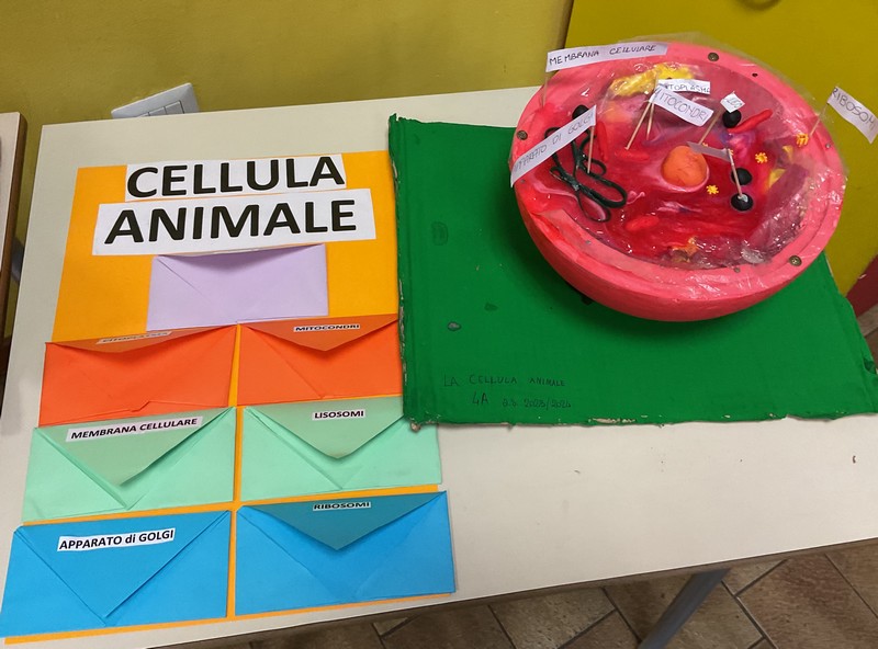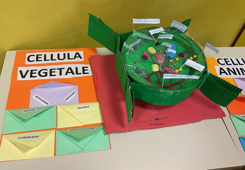 e del bastoncini con un foglietto, una specie di bandiera dove c’erano i nomi dei vari elementi della cellula: apparato di Golgi, nucleo, Mitocondri, ribosomi, lisosomi, membrana cellulare, citoplasma e nella cellula vegetale c’erano pure la parete cellulare e il vacuolo.