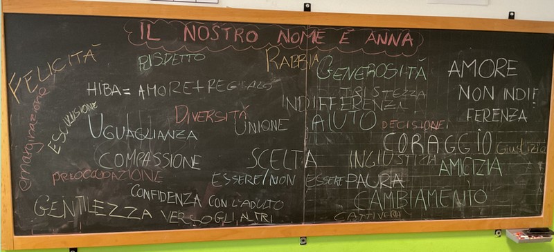 In seguito alla visione del cortometraggio “Il nostro nome è Anna”, che racconta la storia di una ragazza dei nostri giorni alle prese con episodi di discriminazione e bullismo, abbiamo concentrato la nostra attenzione sulle parole e i sentimenti che il video ci ha ispirato: inclusione, Memoria, scelta, cambiamento (il trailer potete vederlo su Youtube: https://www.youtube.com/watch?v=0y933EPX7RI).