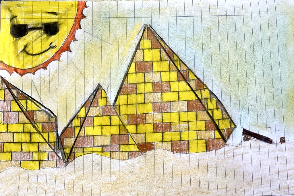 Era di prima mattina ma il sole rovente scottava già la sabbia del deserto, rendendo difficile camminarci sopra. Il sentiero che avrebbero percorso Tuth e il Gran Visir permetteva loro di attraversare tutto il deserto in cerca di gazzelle, leoni, ippopotami, tori e lepri: sarebbero passati davanti alle piramidi di Cheope, Chefren e Micerino, poi sarebbero scesi nel canyon che attraversava il deserto e, infine, avrebbero percorso un tratto del Nilo per tornare al palazzo.