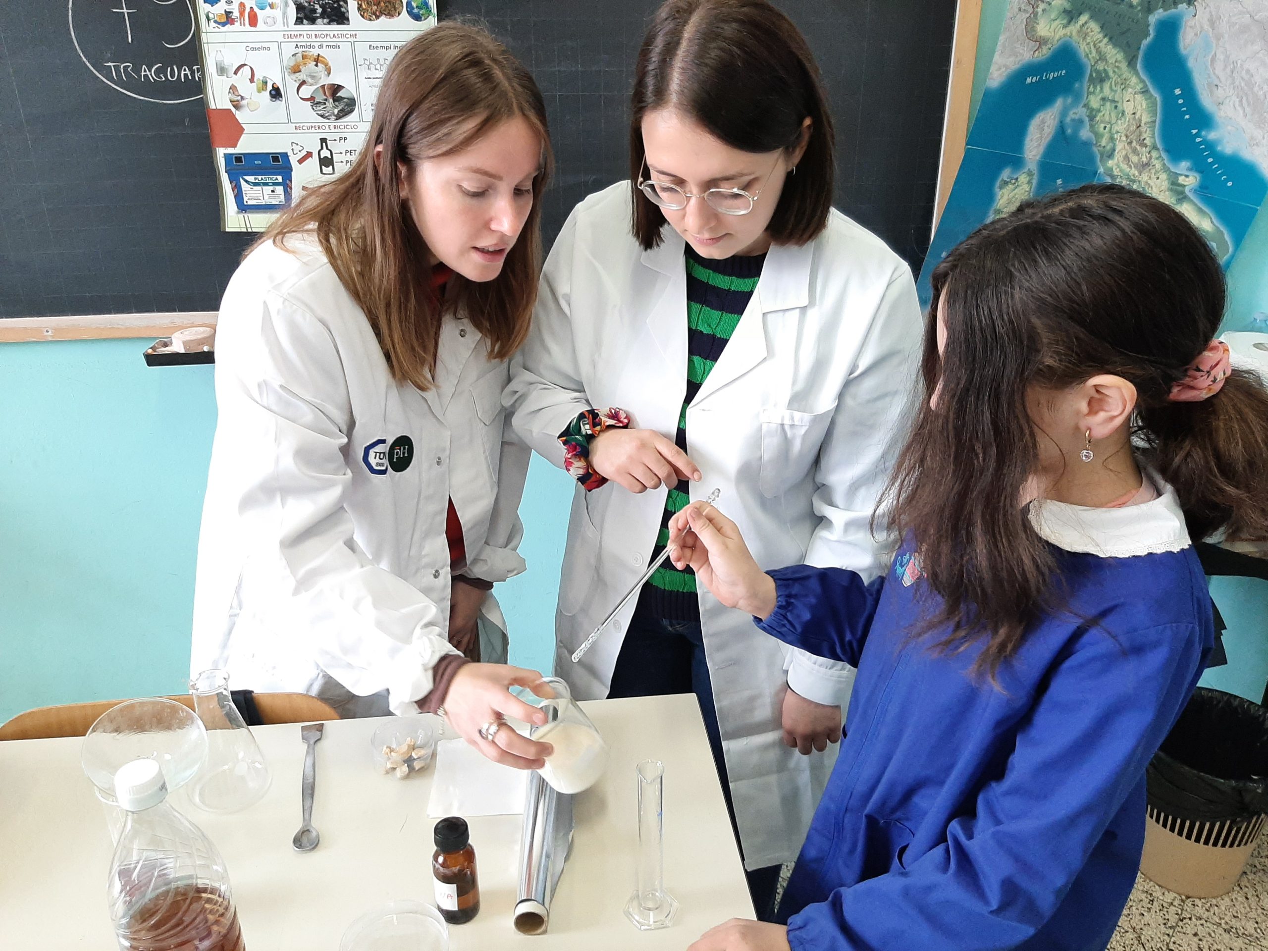 In classe nostra sono venute due vere chimiche dall’Università di Sesto Fiorentino per farci una lezione/laboratorio dal titolo “Salviamo l’ambiente con la chimica verde”: abbiamo parlato di quanto la plastica fosse utile nella vita quotidiana, ma esiste un modo di produrla da fonti diverse dal petrolio, che è una risorsa non rinnovabile; possiamo infatti parlare di bio-plastica, cioè di una plastica fatta con materiali riciclabili e non dannosi per l’ambiente.