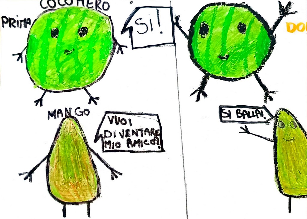 L’anno seguente il cocomero e il mango ebbero un figlio di nome Cocomango e diventarono una famiglia felice.