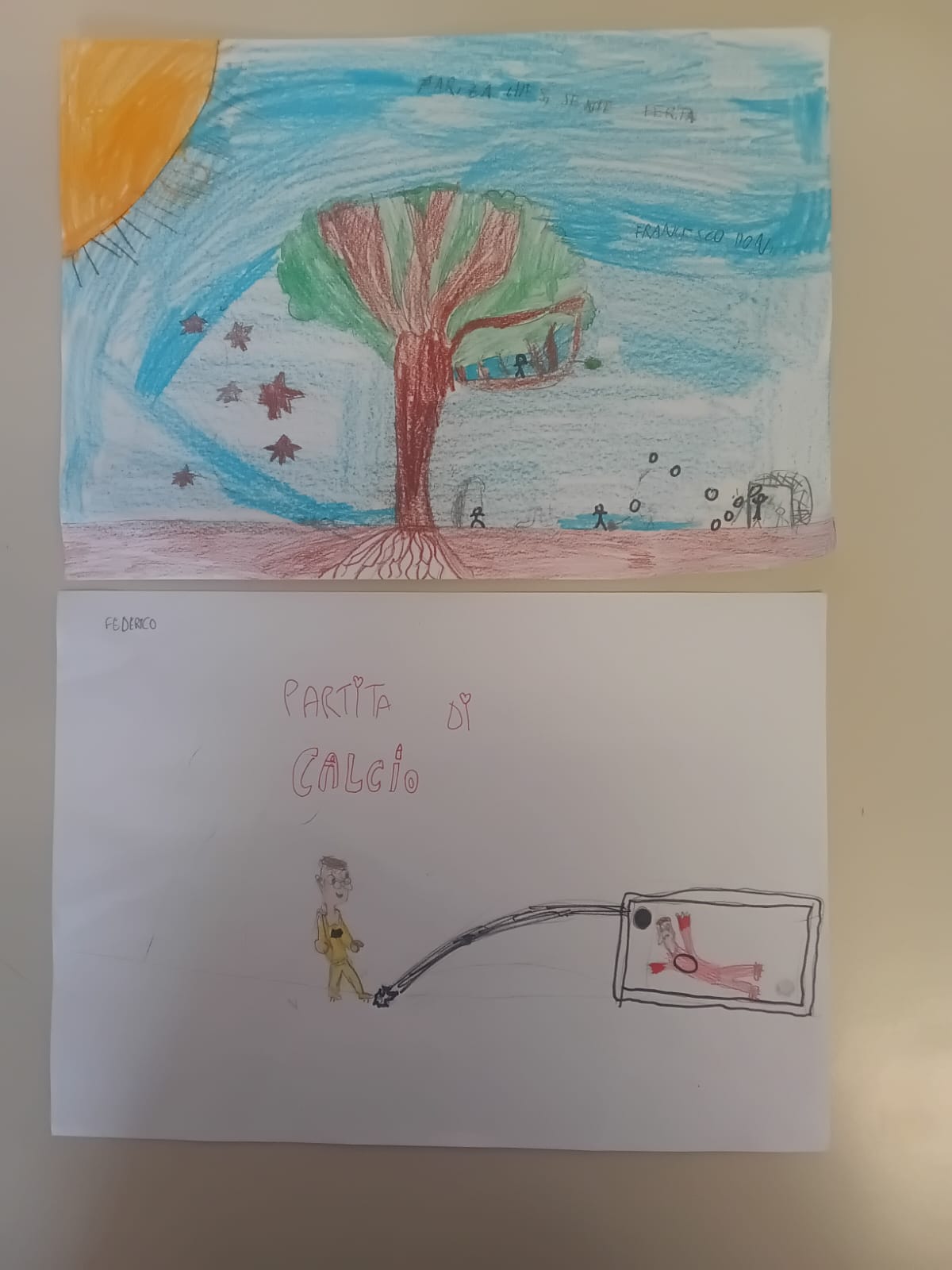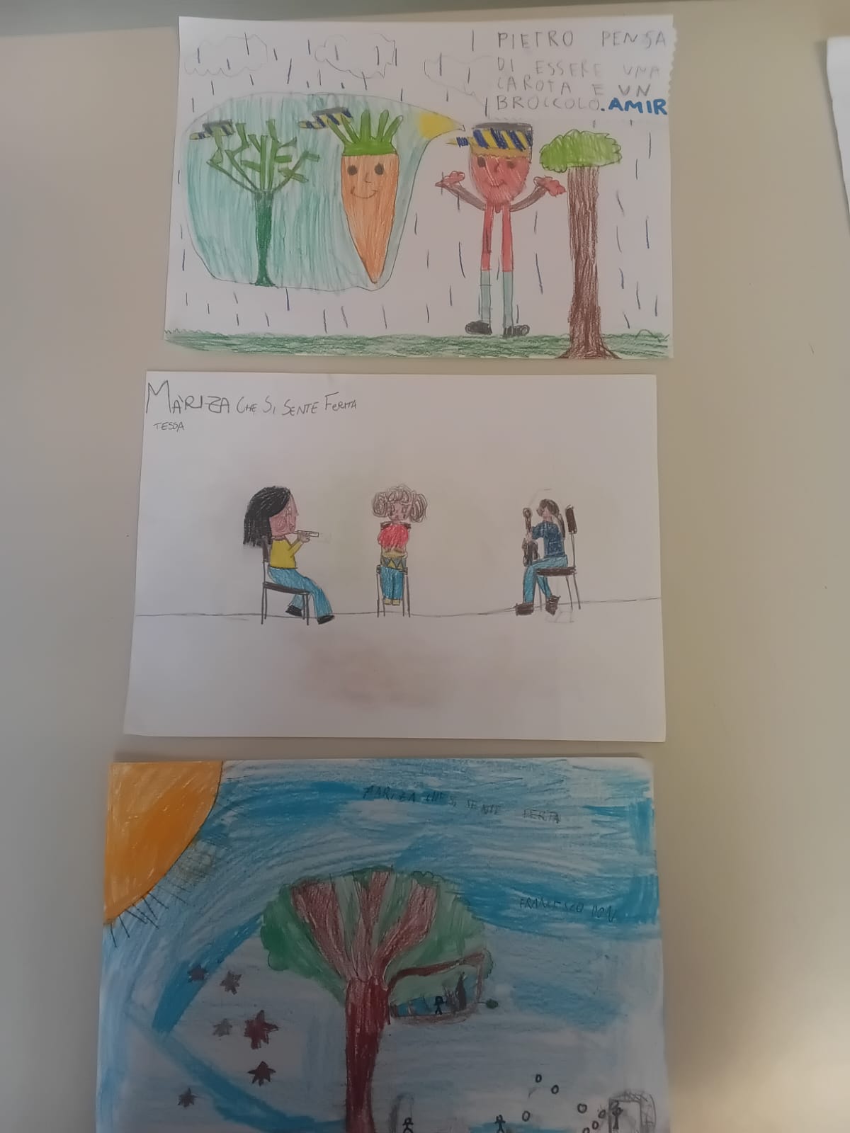 Disegni di Amir, Davide, Anna, Elena, Matilde, Michele, Ionatan, Francesco, Riccardo, Leonardo, Chiara, Valentina, Giada, Sveva, Federico, Francesco, Giovanni, Martina, Francesco, Tessa, Teresa, Gianfranco e Andri