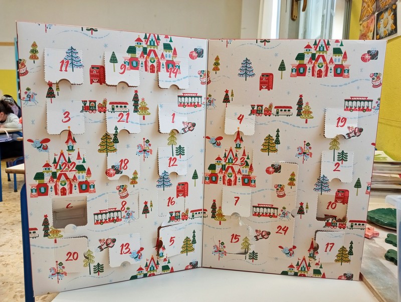 Infatti, a fine novembre, avevamo ricevuto un calendario dell’Avvento da parte delle nostre compagne che sono state in vacanza a Disneyland Paris ma noi bambini ne avevamo già realizzato uno… Quindi siamo stati super felici di avere addirittura due calendari!