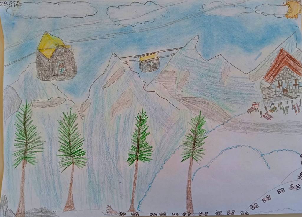 Il corso di sci iniziava la mattina presto e durava fino all’ora di pranzo. Tutte le mattine prendevamo la cabinovia: dall’alto si vedeva il paesaggio tutto innevato e il piccolo paesino circondato dalle montagne. Il maestro di sci era molto simpatico e mi ha insegnato come tenere dritti gli sci durante una discesa a valle. Durante gli anni, ho imparato a percorrere tutte le piste, anche quelle di colore rosso, che sono le piste da grandi, in quanto sono tra le più difficili. L’unica pista che non posso percorrere è quella di colore nero: è molto ripida e ci sono tanti muri e cumuli di neve, infatti è riservata agli adulti molto bravi a sciare. Mi ricordo che, un giorno, con il babbo siamo andati fuori pista, dove c’erano delle piccole colline di neve. Lì il babbo, sciando, si è fatto male ad una gamba, quindi non mi ha potuto portare più in quella zona.