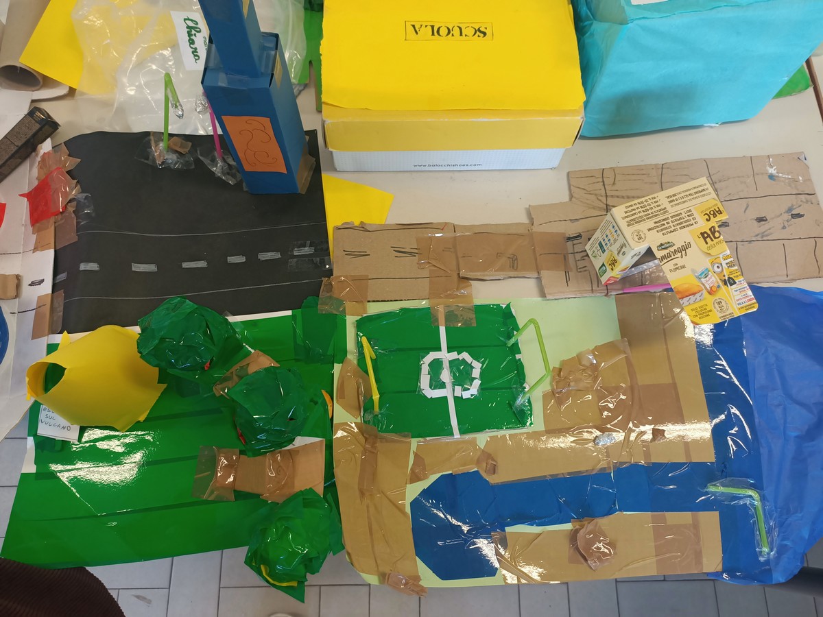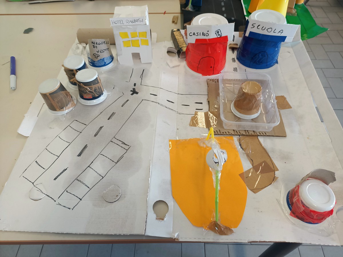 Nelle ultime 6 settimane, a scuola, ci siamo divisi in gruppi, abbiamo preso delle cose da casa e con quelle abbiamo creato una vera e propria città “fai da te”.