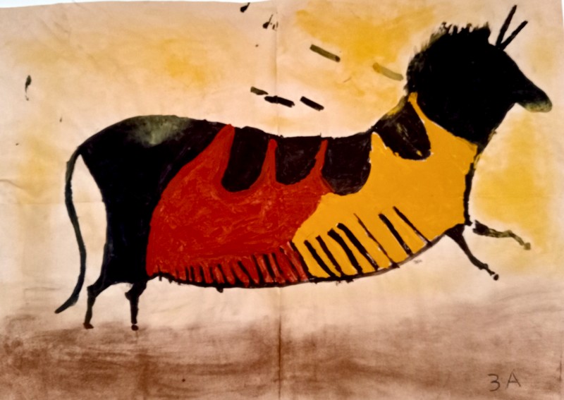 Con l’aiuto di un’esperta del Museo di Preistoria di Firenze, in classe abbiamo provato a riprodurre alcune di queste pitture.