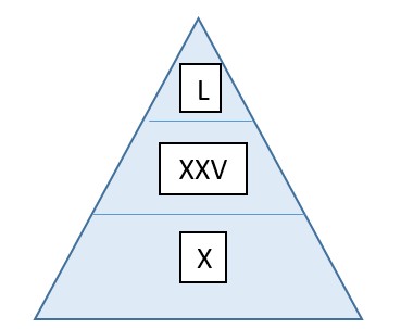 Si lanciano le noci cercando di fare il punteggio più alto, verso il vertice del triangolo: i numeri romani dei punti sono X = 10, XXV = 25, L = 50, chi fa più punti vince, ma guai ad uscire dal triangolo, non si fanno punti!