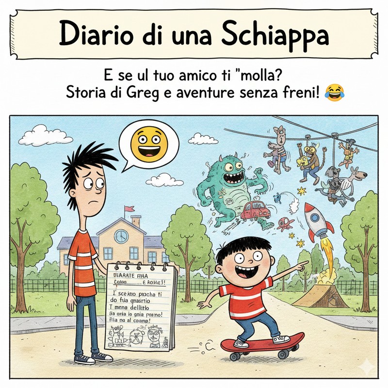 Il protagonista è un ragazzo di nome Gregory, ma tutti lo chiamano Greg. Pensate un po’: a un certo punto, lui e il suo migliore amico litigano (o, come dice il libro, Greg “molla” il suo amico) e Greg dovrà affrontare un sacco di nuove avventure, ma stavolta da solo! Chissà cosa gli capiterà?