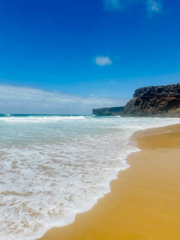Fuerteventura é una piccola isola delle Canarie dove é caldo tutto l’anno ma c’é anche molto vento, infatti vengono praticati sport d’acqua, tra cui il surf e il windsurf, specialmente nel nord dell’isola a El Cotillo nelle immense spiagge con pareti rocciose, e a sud in una spiaggia lunghissima chiamata Sotavento dove ogni anno fanno anche gare importanti.