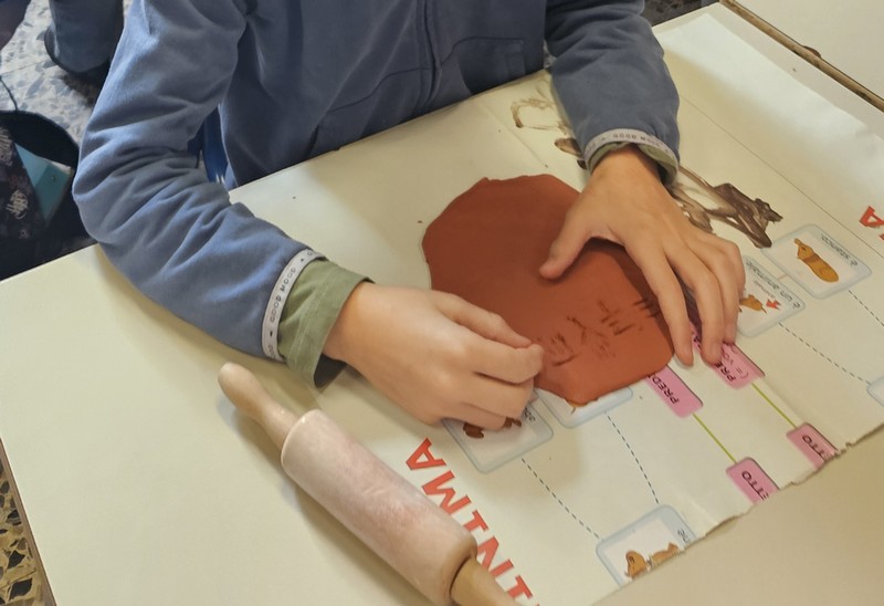 - Schiacciamo: con l’aiuto di una mattarello, abbiamo pressato il Das per renderlo liscio e piatto.
