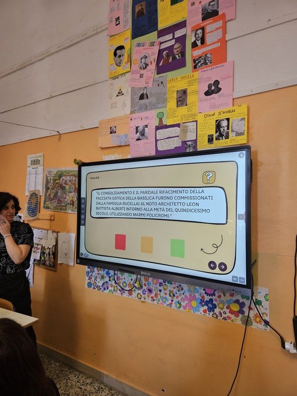 Per i compiti delle vacanze di Natale, la maestra Serena ci aveva diviso in gruppi e aveva assegnato a ciascuno un luogo di Firenze da esplorare, con un libricino da compilare. Al rientro a scuola, la maestra ha dato un computer a ogni gruppo per scrivere una ricerca sul luogo assegnato. Con queste informazioni stiamo realizzando una mappa digitale interattiva per bambini!