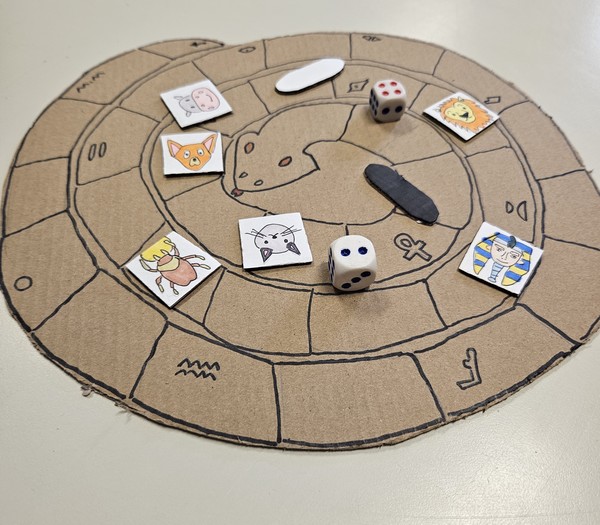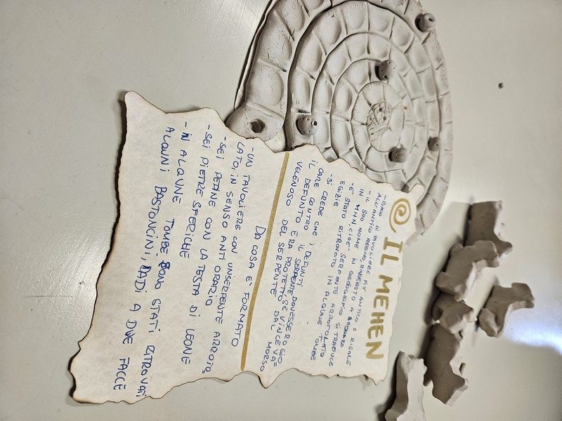 ​Noi due, e la maggior parte della classe, abbiamo costruito il “Mehen”: un gioco simile al Gioco dell’Oca, ma egizio. Il Mehen è uno dei più antichi giochi da tavolo conosciuti. Il nome significa “colui che è arrotolato”; infatti, il piano di gioco è un serpente arrotolato.