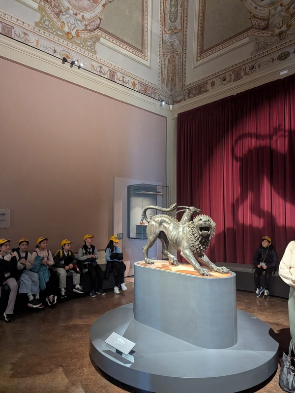 In seguito, abbiamo ammirato l’unico reperto di un faraone del museo di Firenze: un pilastro con l’immagine di Seti I. Subito dopo è arrivato il pezzo unico, un carro da caccia in parte ricostruito. Poco più avanti, per richiesta delle femmine, abbiamo visto un’affascinante statua di una chimera etrusca, fuori programma!