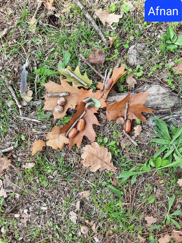 Abbiamo usato foglie, ghiande, pigne, insetti morti, rametti e cortecce.