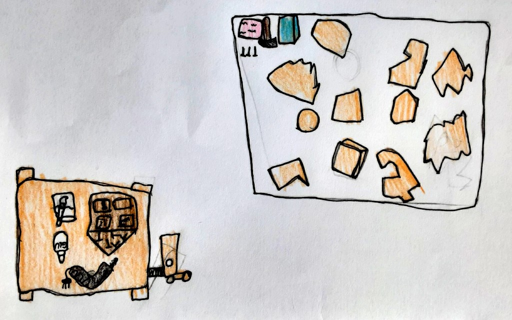 Lì noi lavoriamo il legno come vogliamo e costruiamo ogni cosa possibile, come animali, cose o personaggi. Usiamo chiodi, trapani e martelli e non ci facciamo mai male!