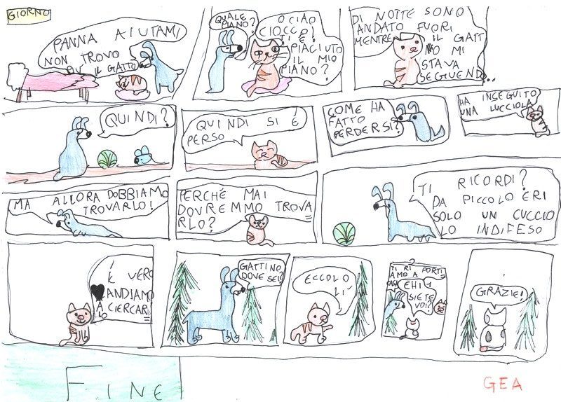 Ho fatto un fumetto perché mi piace sia scrivere sia disegnare. Ho fatto proprio questo perché ne ho letto uno a casa, chiamato Ciocco, Panna e Caramello che è veramente carino. A cura di Gea CONDIVIDI: