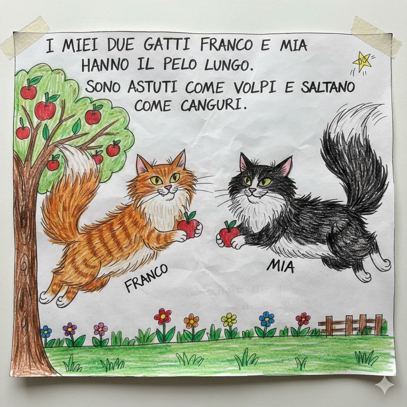 Con i miei due gatti io gioco sempre con una pallina rimbalzina e per me sono come due peluches perché sono molto morbidi e hanno il pelo lungo.