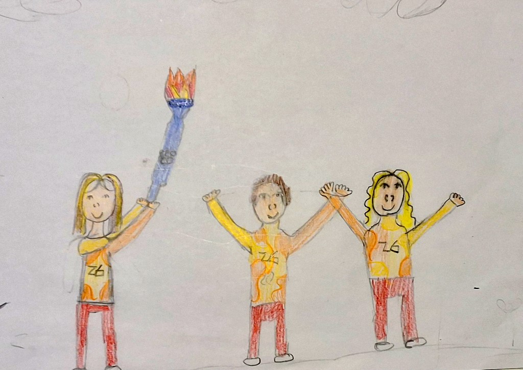 Dopo cinque minuti, la fiamma olimpica è arrivata: tutti erano eccitati! Poi abbiamo visto lo scambio della torcia e siamo andati via.