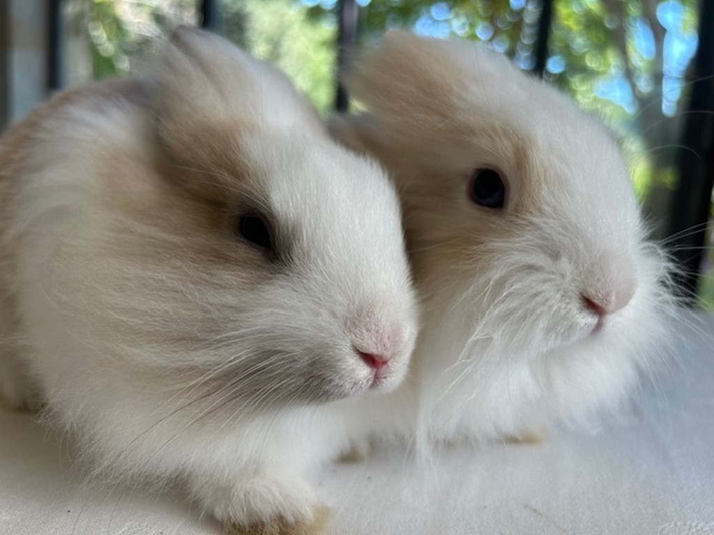 Lia e Lalla sono sorelle, tra di loro sono molto affettuose, ogni giorno si leccano e dormono sempre vicine. Quando lasciamo la gabbia aperta escono e si divertono correndo per il salotto, saltano sui su e giù dai divani e cercano di avvicinarsi alle piante per mangiare le foglie. Hanno provato a mangiare perfino un cactus. Normalmente mangiano fieno e crocchette alle erbe. Bevono tantissima acqua. In tre mesi sono diventate già molto grandi.
