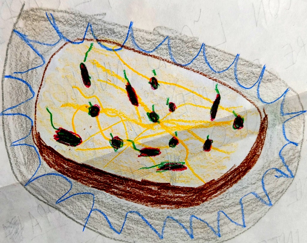 Il pane duro che attenua il sapore dell’olio e ti fa sentire un gusto acerbo, alla fine i capperi con il loro sapore intenso e buono e il sapore di aceto, alla fine una buona spremuta di arance e mandarini e si va a giocare!!!